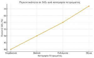 [[Αρχείο:SiO2.png|μικρογραφία|Το διάγραμμα: δείχνει πώς αυξάνεται η περιεκτικότητα σε '''διοξείδιο του πυριτίου (SiO₂)''' καθώς περνάμε από τα '''υπερβασικά''' στα '''όξινα''' πετρώματα.]] | |||